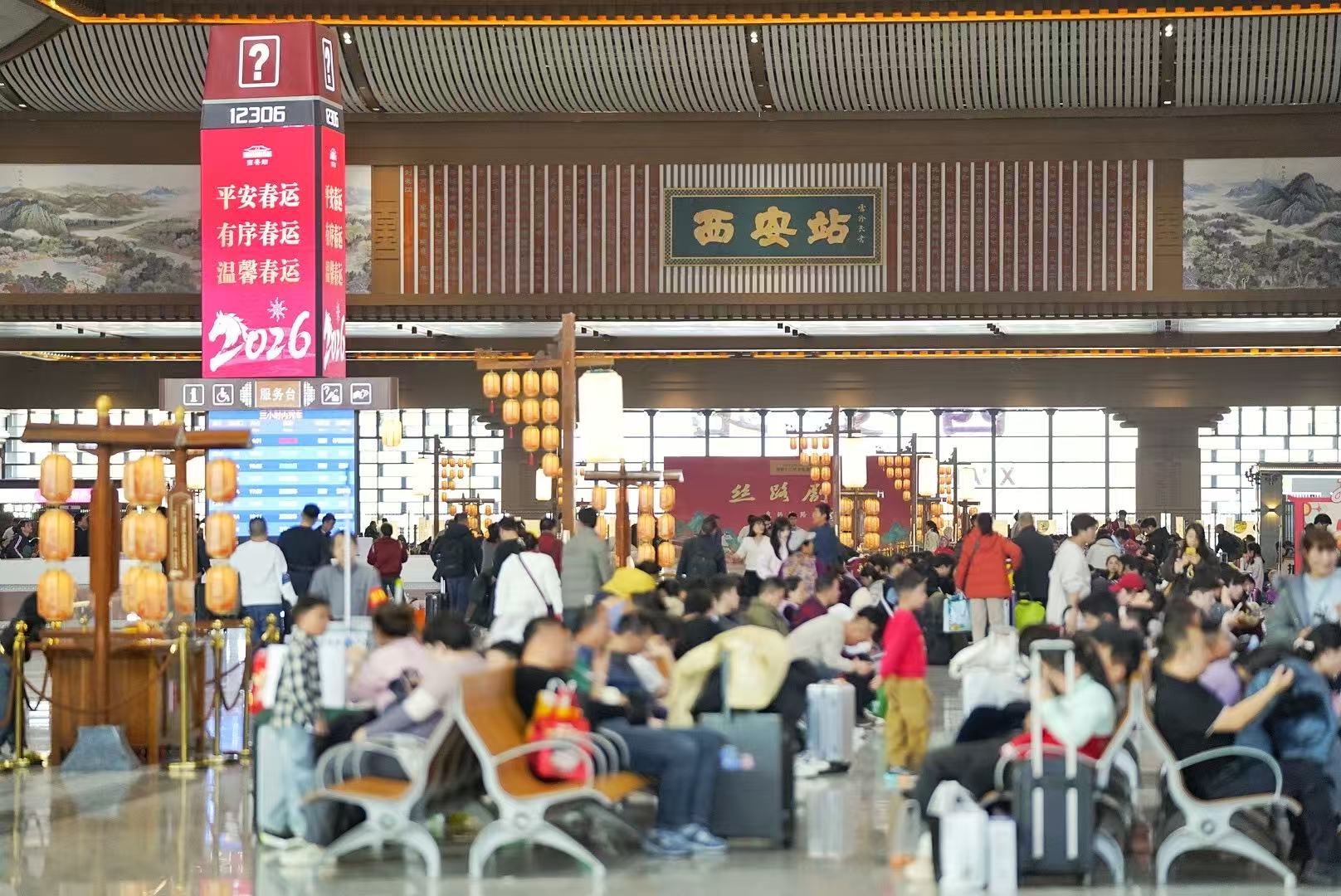 2月15日西安站候车大厅旅客。摄影/路炳阳