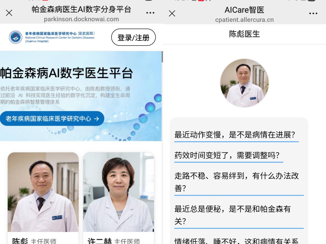 帕金森病AI数字医生平台。(截图自微信公众号宣武医院国家临床医学研究中心AI医生平台)