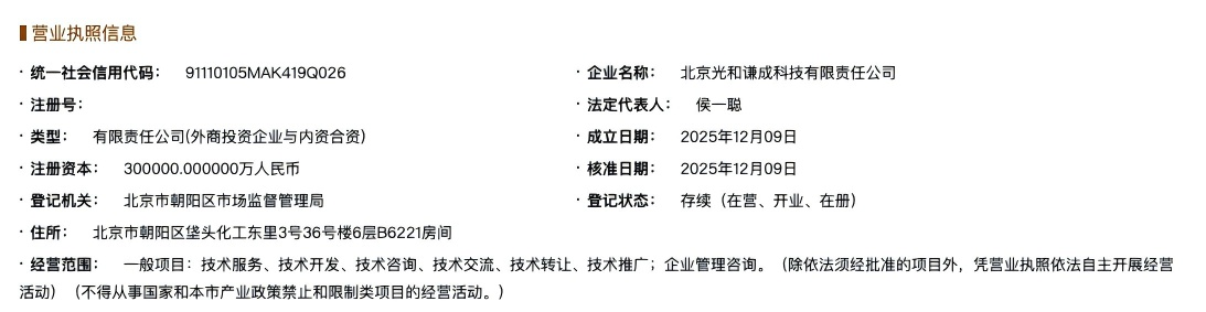 12月10日,国家企业信用信息公示系统披露的信息显示,该公司已于12月9日成立,注册资本30亿元。